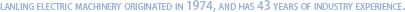 蘭菱機(jī)電 起源于1974年,至今已有44年行業(yè)經(jīng)驗。